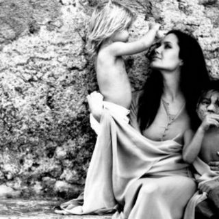 Además de mostrar a Jolie haciendo “boca de pescado” o “topless”, en otra de las imágenes en blanco y negro, la actriz aparece rodeada de sus hijos.