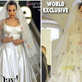 Angelina Jolie y Brad Pitt, detalles del vestido de novia de la actriz también se difundieron.