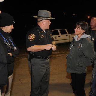 Más de 50 agentes del orden -entre ellos ayudantes del jefe de la policía, agentes de la patrulla de carreteras, policías y agentes de la División de Fauna Salvaje estatalâ- vigilaban la granja de 16 hectáreas (40 acres) y las zonas circundantes en automóviles y camionetas, con frecuencia bajo la lluvia.