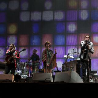Los extravagantes vocalistas, Win Butler y Régine Chassagne, se presentaron en el escenario: él ataviado con un traje que recordaba a un esqueleto y ella, con unas flores en la cabeza al estilo de la pintora Frida Kahlo, y en numerosas ocasiones agradecieron en español la entrega del público.