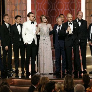 GUADALAJARA, JALISCO (09/ENE/2017).- Se llevó todo. La entrega número 74 de los Globos de Oro a lo mejor del cine y la televisión por parte de la Asociación de Prensa Extranjera de Hollywood se rindió ante la película musical “La La Land”, la gran triunfadora de la noche al ganar todas las estatuillas en las que estuvo nominada: Mejor director, Mejor película de comedia musical, Mejor guion, Mejor canción original, Mejor banda sonora, Mejor actor y Mejor actriz.
