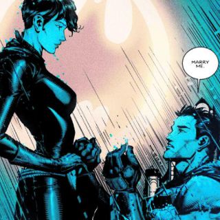Para sorpresa de los fans del personaje, Bruce Wayne llega a la conclusión que una de las pocas personas que siempre está para él es la villana, el héroe se pone de rodillas ¡y le pide matrimonio! Será el próximo mes, en “Batman 25” cuando se descubra si ella acepta el anillo. ¿Habrá boda?