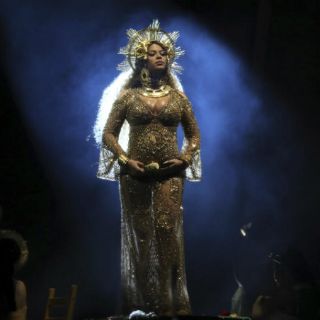 Con un vestido dorado y una corona del mismo color, Beyoncé se presentó en la gala para interpretar los temas "Love drought" y "Sandcastles".