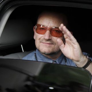 CIUDAD DE MÉXICO (12/MAY/2011).- Bono, vocalista del grupo irlandés U2, ingresó a la residencia oficial de Los Pinos para su encuentro con el Presidente Felipe Calderón.