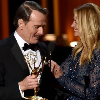 Julia Louis-Dreyfus, quien recibió su tercer Emmy consecutivo a la mejor actriz en una serie de comedia por "Veep", arrancó carcajadas al simular un beso apasionado con el astro de "Breaking Bad" Bryan Cranston, con quien había presentado un premio poco antes y con quien llegó a trabajar en "Seinfeld".