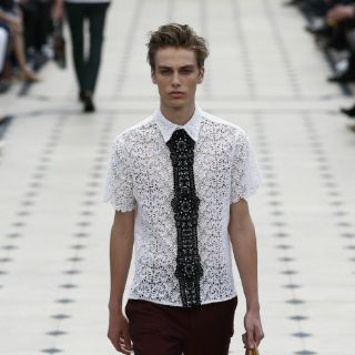 Modelos vestidos con abrigos largos de encaje y camisas blancas del mismo tejido. Para Burberry, esta tela no es exclusiva de las mujeres, aunque, como reconoce el director artístico y general del grupo de lujo británico Christopher Bailey, este estilo no gustará a todo el mundo.