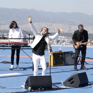 Sobre el helipuerto, habilitado como escenario en el que fue colocado el equipo de sonido, los cuatro integrantes del grupo y un músico extra en la batería tomaron sus posiciones con el cantante Rubén Albarrán al frente y detrás el bajista Quique Rangel, el tecladista Emanuel del Real y el guitarrista Joselo Rangel.