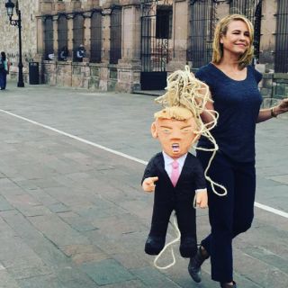 Recorrió las calles de Aguascalientes con una piñata de Donald Trump para buscar un árbol de donde colgarla.