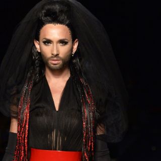 Conchita se sentó en la primera fila del último desfile de Gaultier, pero en esta ocasión se ha subido a la pasarela como modelo de honor.