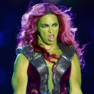 Cibernautas convierten a la cantante en Hulk y en musculosa fisicoculturista, con base en fotografías de su participación en el Super Bowl