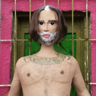 A través de su cuenta en Facebook, la piñatería compartió imágenes de su nueva creación, donde se reprodujeron desde los tatuajes del cantante hasta las raíces blancas de su cabello.