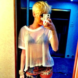 La más reciente la muestra con una blusa que deja ver su ropa interior, así como con un pantalón ajustado y botas.