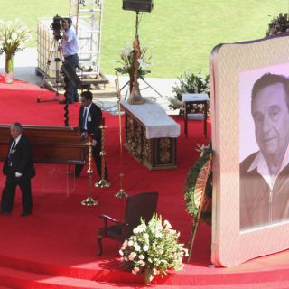 Al centro de la cancha en el recinto se colocó una carpa a donde fue llevado el féretro del actor.