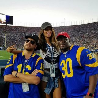 González posó en la imagen junto al actor y ex jugador de futbol americano, Donovan Carter, y Dave O Philly, quienes apoyaban a los Rams, equipo que ganó el encuentro por 28 a 24.