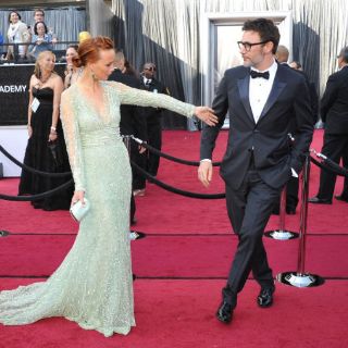 HOLLYWOOD, ESTADOS UNIDOS (26/FEB/2012).- La franco-argentina Berenice Bejo, estrella de "El artista" ("The artist"), llevaba un vestido de Elie Saab color menta, mientras Penelope Ann Miller, su colega de reparto que interpreta a la infeliz esposa del actor George Valentin en la multinominada cinta francesa, prefirió un rosa claro de Mischka.