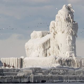 El famoso faro de Cleveland se congeló por las bajas temperaturas