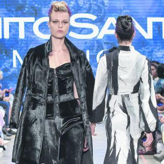 Santos dividió en dos momentos la pasarela, una donde destacaba una estética más contenida para demostrar la feminidad de la mujer donde los tonos pasteles en rosa y azul en enfoques cenizos, acentuaban siluetas delicadas y suaves. La segunda entrega ofrecía un halo de dramatismo donde lo orgánico aparecía en los detalles de bordados de flores en tercera dimensión. En esta segunda entrega destacaron los grises, blancos y negros.
