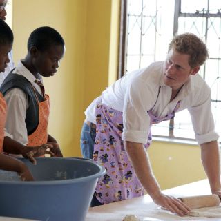 En el Centro Kananelo, cerca de la capital Maseru, el hijo menor del príncipe Carlos de Gales mostró habilidades culinarias, pues se unió a un grupo de alumnos en una clase de cocina, se puso un delantal e intentó elaborar un "makoenya", un pastel local.