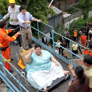 La tailandesa, identificada por la televisión como Amnuayporn Thongprapai, de 40 años, indicó que llevaba tres años sin salir de casa debido a su volumen, que sólo le permite andar lo suficiente para poder ir por su propio pie de la habitación al cuarto de baño.