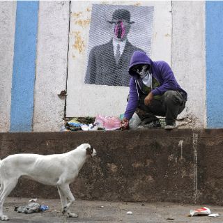 Para la plaza que agrupa varios de los hoteles más elegantes de Tegucigalpa, ha elegido sustituir la manzana que cubre la cara del "Hijo del hombre" de René Magritte, por una granada. Tres jóvenes que se esconden tras unos árboles para fumar marihuana protegidos por la seguridad del entorno no dudan al opinar sobre el cartel. "Los responsables de la violencia en Honduras están escondidos, no conocemos sus caras, pero son poderosos, llevan saco y corbata" dice uno de ellos, Gerson Ortiz, de 21 años y estudiante del instituto metropolitano.