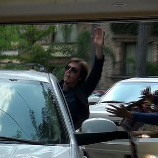 Cuando el ex beatle salió a la luz de la calle saludó con la mano, asomó la cabeza y después sacó el torso de la ventanilla para que lo vieran también quienes esperaban del lado opuesto. Su esposa, Nancy, saludó también con una gran sonrisa y la ventana abajo. Ambos portando lentes oscuros.