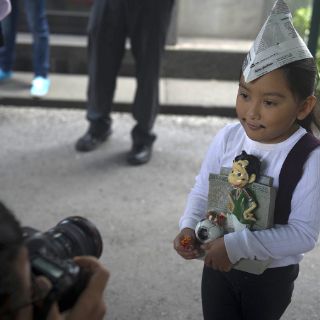 Una niña de 5 años llegó al lugar disfrazada del "peladito", el personaje que conquistó los corazones de millones de mexicanos desde 1940. Arumi Soto Leal portaba un sombrero de periódico, camisa blanca, pantalón negro y, por supuesto, un trapo en el hombro al que Cantinflas llamaba su "gabardina", además de sus bigotes ralos maquillados en el rostro.