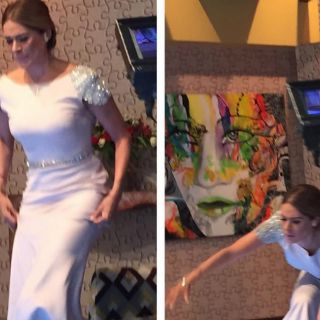 En esa aclamada entrega por el programa “ Hoy”, la actriz llevaba un vestido elegante pero bastante ajustado de color blanco, que al momento de recibir el galardón no le ayudó de mucho.