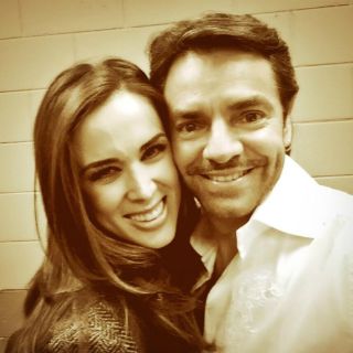 "Es oficial!!! Ya estamos en Las Vegas!!!! Listos @EugenioDerbez y yo para conducir los @LatinGRAMMYs", escribió en su cuenta de Twitter.