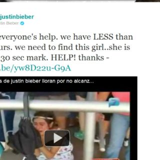 Hacia las cuatro de la tarde, el ídolo canadiense escribió en su Twitter: “Necesito la ayuda de todos ¡Tenemos menos de 24 horas para encontrar a esta niña!”. Bieber no aclaró la razón por la que quería encontrar a la fan, si le daría boletos para el show de hoy en Monterrey o si la invitaría al camerino.