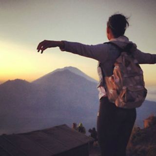 La cantante, quien viene de un divorcio de Russell Brand y una relación que no ha confirmado con John Mayer, publicó en su Twitter una imagen acompañada por el texto "comí, oré y escalé un volcán".