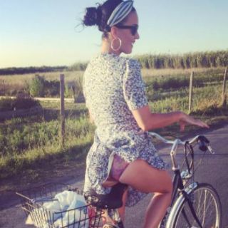La cantante colgó en su cuenta de Instagram una instantánea paseando en bicicleta, en el que su vestido se atora “por descuido” con su ropa interior, lo que provoca que quede a aire libre parte de su trasero mientras ella aparenta no darse cuenta.
