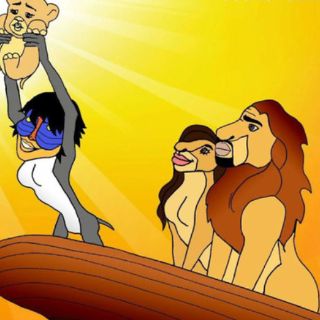 Kim Kardashian, Kanye West y hasta la pequeña North West como la familia del "Rey León".