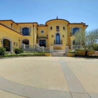 Esta propiedad de estilo toscano tiene una extensión de tres cuartos de acre, es de dos niveles, cinco recámaras y siete baños, suelo de parquet de nogal negro, chimeneas, vigas y techos de catedral, bar bodega, ascensor y piscina.