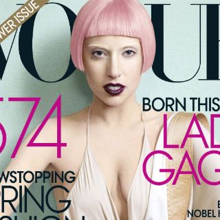 La cantante es la portada del mes de marzo de la revista Vogue, las fotos fueron tomadas por Mario Testino, siempre innovadora, Gaga luce una peluca corta en color rosa y un vestido en color claro que permite ver parte de su escote, la cantante es una estrella que marca tendencia en su manera de vestir rayando entre lo estrafalario y lo innovador.