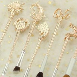 Cada brocha está inspirada en una casa diferente del mundo de Westeros. Desde los Greyjoy y Stark, hasta los Lannister y Targaryenn. Además cada kit viene en un color diferente: bronce, plateado, rosa y cobre.