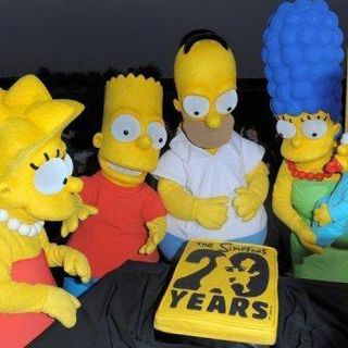 Muñecos de los Simpson durante la fiesta del vigésimo aniversario, 'The Simpsons: Treehouse of Horro', en la localidad californiana de Santa Mónica, el 18 de octubre de 2009. La famosa serie de televisión salió por primera vez al aire en diciembre de 1989.