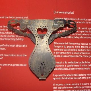 Observando de cerca de los cinturones de castidad resulta imposible imaginar a una mujer embutida en semejantes artilugios de metal pesados, duros y cortantes, algunos con agujeros estratégicamente colocados y otros sin ellos, cerrados con enormes candados, con los que ni siquiera podría caminar libremente, ni mucho menos sentarse.