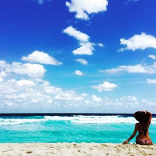 redes sociales, la actriz publicó una imagen de lo bien que lo está pasando en las playas de la Riviera Maya, en Cancún, Quintana Roo.