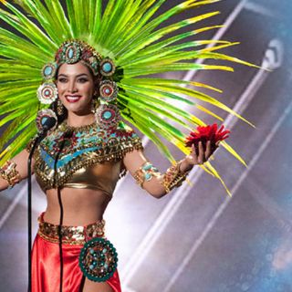 El traje típico de Wendolly estuvo inspirado en Xochiquetzal, la diosa de la belleza y el amor en la mitología mexica. Fue diseñado por Eduardo Estrada.