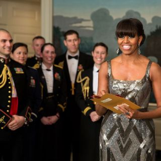 El actor Jack Nicholson dio la palabra a Michelle Obama, quien comenzó su intervención con un expresivo: "Bienvenidos a la Casa Blanca".