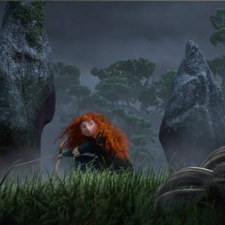 En otra escena en el trailer, Mérida se topa con místicas volutas azuladas y el temible oso que le arrebató la pierna a su padre. Andrews dijo que pese al tono oscuro de la película en 3D, en comparación con otras de Pixar como "Toy Story" y "Cars", a "Brave" no le faltará la "comedia" a la que suelen asociarse sus películas.