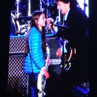 Leila, de 10 años de edad, comparte el escenario con el ex Beatle durante un concierto en Argentina