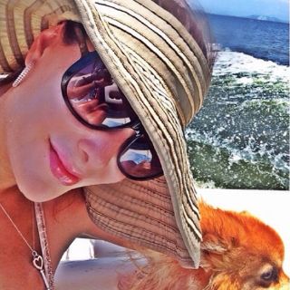 Posteriormente, la también actriz publicó una foto con su perro y una imagen de una tortuga en la arena.