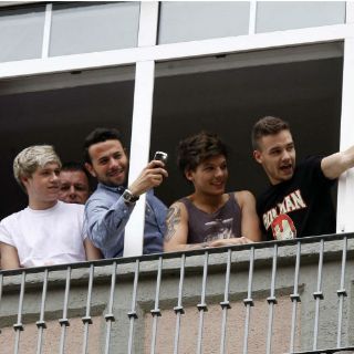 A las 17:24 horas cuatro de los cinco integrantes salieron a la terraza para saludar a los cientos de seguidores que eufóricos gritaron de la emoción al verlos de lejos.