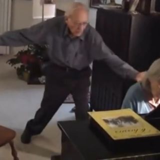 La grabación de poco más de un minuto muestra a una mujer de 82 años tocando en el piano "La Galopera" una polca paraguaya muy conocida y querida por la pareja, mientras el hombre de nombre George de 91 años se acompaña del ritmo para mostrar sus mejores pasos.