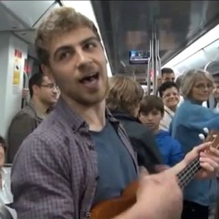Él decidió salir con su currículum vitae memorizado y no sólo eso, sino que además, acompañado por el sonido de su ukulele, lo canta dentro de un vagón del metro de Barcelona con la esperanza de que algún pasajero le dé empleo.