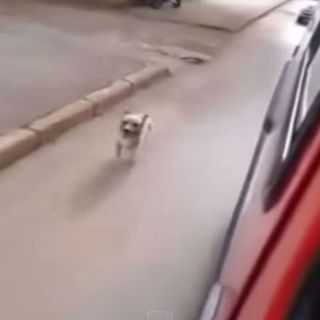 El can corre a toda velocidad tras el vehículo de emergencia y logra que lo suban