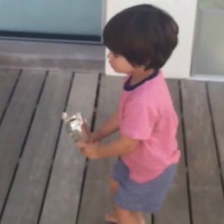 El primer hijo de la cantante Shakira y el futbolista, parece haber heredado el talento de su padre, quien en el video también festeja entre risas el gol de su primogénito.
