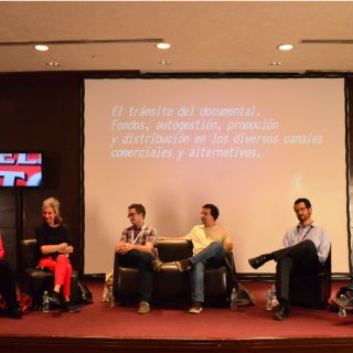 En la charla participó José Rodríguez, del festival de cine de Tribeca; José Miguel Álvarez, de Imcine; Inti Cordera, de DocsDF; Bruni Burres, del festival de Sundance y Don Edkins, productor independiente sudafricano quienes abordaron desde su perspectiva y de cómo trabajan sus instituciones para promover el talento latino que realiza largometrajes documentales.