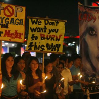 MANILA, FILIPINAS (21/MAY/2012).- Las autoridades filipinas reforzaron hoy las medidas de seguridad para el concierto que Lady Gaga ofrecerá esta noche en Manila, después de que la llegada al país de la cantante estadounidense haya provocado fuertes protestas de algunos grupos cristianos.